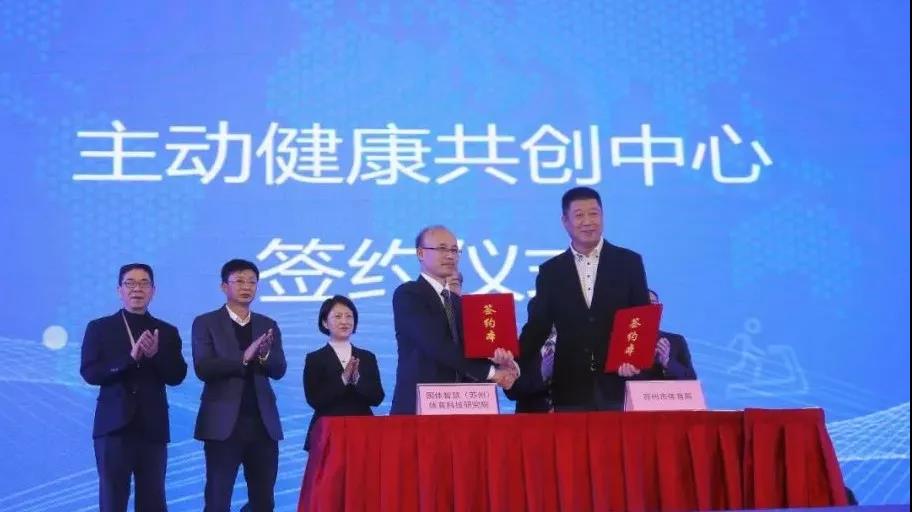 研究院還與蘇州市體育局合作共建“主動健康共創中心”,打造蘇州市體育健康產業展示窗口和服務平臺。蘇州市體育局副局長陶勇杰與李祥臣主任共同出席主動健康共創中心簽約儀式;