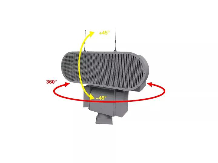 在飛機(jī)起飛或降落階段,強(qiáng)聲定向裝備發(fā)射一個(gè)波束角度為30°的指向性驅(qū)鳥聲波,伴隨飛機(jī)升降高度,裝備可上下45°角、水平360°旋轉(zhuǎn)自動調(diào)整方向以精確驅(qū)趕飛機(jī)周邊潛在鳥禽。由于該裝備的聲音傳輸距離最遠(yuǎn)達(dá)到6000米,遠(yuǎn)遠(yuǎn)超過了鳥擊的高發(fā)高度,大大提高了驅(qū)鳥的效率。