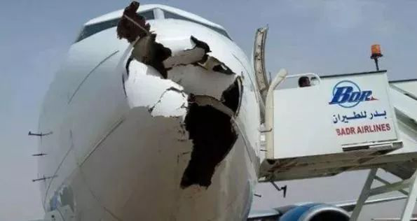 9月25日,據(jù)英國《太陽報(bào)》報(bào)道,一架噴氣式客機(jī)遭到鳥群撞擊,機(jī)鼻損壞嚴(yán)重。這架波音737客機(jī)屬于蘇丹的Badr航空公司,當(dāng)時(shí)飛機(jī)正從達(dá)馬津飛往喀土穆國際機(jī)場。