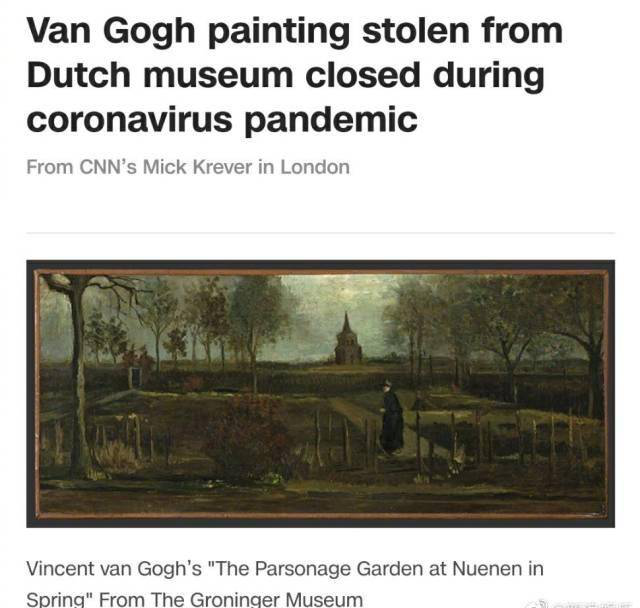 調(diào)查顯示,盜賊在當(dāng)?shù)貢r(shí)間30日凌晨3點(diǎn)15分破門而入,當(dāng)警察聽到報(bào)警器響趕到現(xiàn)場(chǎng)時(shí),盜賊已經(jīng)逃離,沒有其他畫作失竊。受荷蘭新冠肺炎疫情的影響,辛格博物館此前一直處于關(guān)閉狀態(tài),盜賊正是瞄準(zhǔn)了這個(gè)時(shí)機(jī)進(jìn)行偷盜。警方申明,《春天花園》這副畫作已被添加到國際刑警組織的“國際失竊藝術(shù)品”清單中,警方正在全力調(diào)查。