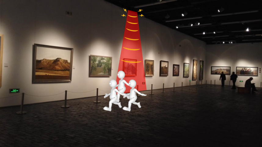 高清監(jiān)控?cái)z像頭、紅外探測(cè)器以及報(bào)警系統(tǒng)這些似乎是博物館等展館的安防標(biāo)配設(shè)備,很大程度上這些設(shè)備能夠在關(guān)鍵時(shí)刻發(fā)揮作用,及時(shí)探測(cè)到可疑人員的進(jìn)出、怪異的行為,實(shí)時(shí)記錄犯罪證據(jù),并向警方發(fā)布報(bào)警求助信息。這一連串的反應(yīng)在安防技術(shù)上已經(jīng)十分成熟,但是缺少了事中階段主動(dòng)防御的過程,很容易發(fā)生還未等到警方到達(dá)現(xiàn)場(chǎng)、犯罪嫌疑人已經(jīng)逃離的情況。在警方調(diào)查現(xiàn)場(chǎng)、查看記錄、追蹤追捕的時(shí)間里,很有可能造成藝術(shù)品被轉(zhuǎn)賣被破壞,增加展館的損失,也是人類文明的損失。